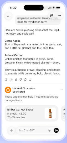 As you can see from the preview, ads in ChatGPT responses will be clearly marked as “sponsored” so that the user can clearly distinguish between an organic answer and paid ad.