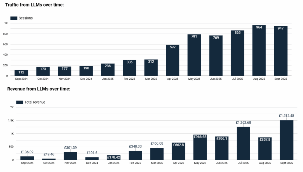 This data reveals whether LLM traffic is high-intent, which product categories or content types perform best, and where to focus future optimisation – such as improving structured data, enhancing product detail, or refining content that AI systems are already drawing from. In short, tracking LLM traffic gives you an early competitive edge in understanding and capitalising on how customers find you through AI-driven experiences.